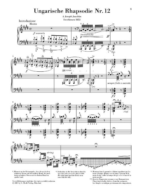 Franz Liszt Hungarian Rhapsody No 12 For Solo Piano