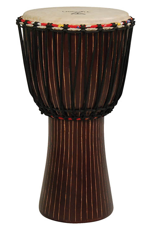 Hand-Carved African Djembe - T1 Finish10 inch.Publisher: Tycoon PercussionCategory: Music Related ProductsSeries: TycoonHandcrafted from a single piece of sun-dried Mango wood, this djembe is 22 inch. tall with a 10 inch. diameter hand-picked quality goat skin...Regular price $234.99 -