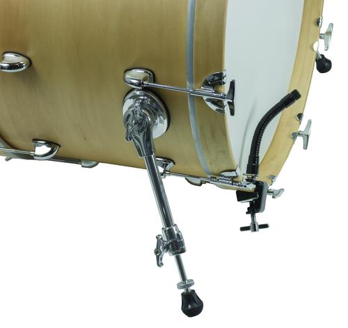 The Bass Drum Hoop Mic Mount allows you to mount your bass drum mic to the front hoop of your bass drum. The Gibraltar Deluxe Hoop Clamp is lined with a rubber guard to prevent any marring of the hoop when attaching. Easily position the mic with the 8 inch. gooseneck that threads on to the post of the hoop clamp. This accessory is great for players who want to remove the mice stand from the front of their bass drum. Features include: · Mount bass drum mic to the front bass drum hoop · Deluxe hoop clamp with rubber guard for hoop protection · 8 inch. gooseneck · Perfect for micing your bass drum without mic stand