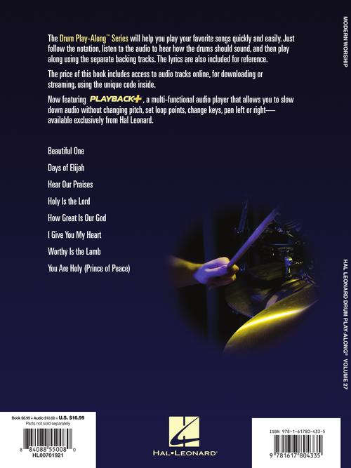 Modern Worship Drum Play-Along Volume 27 Publisher: Hal Leonard Category: Drums & Percussion Series: Drum Play-Along Format: Softcover Audio Online Play your favorite songs quickly and easily with the Drum Play-Along® series! Just follow the drum...Regular price $23.99 -