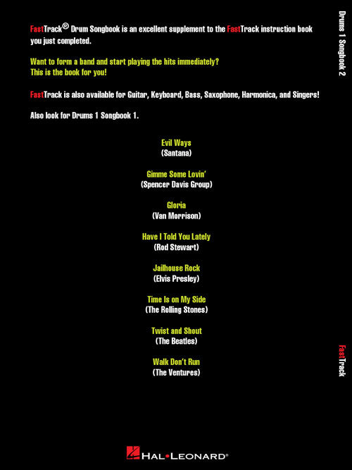 Artist: Various FastTrack Drums Songbook 2 - Level 1 Publisher: Hal Leonard Category: Drums & Percussion Series: Fast Track Music Instruction Format: Softcover Audio Online 8 songs, including: Evil Ways · Gimme Some Lovin' · Gloria...Regular price $17.99