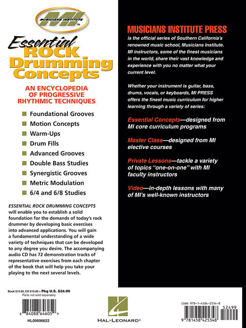 Author: Jeff Bowders Essential Rock Drumming Concepts - An Encyclopedia of Progressive Rhythmic Techniques Musicians Institute Master Class Publisher: Musicians Institute Press Category: Drums & Percussion Series: Musicians Institute Press Format: Softcover with CD Essential Rock...Regular price $29.99 -