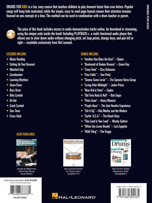 Author: Various Hal Leonard Drums for Kids A Beginner's Guide with Step-by-Step Instruction for Drumset Softcover Audio Online Drums for Kids is a fun, easy course that teaches children to play drumset faster than ever before....Regular price $17.99