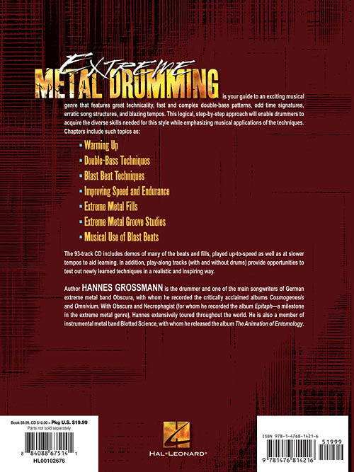 Author: Hannes Grossman Extreme Metal Drumming Softcover with CD Exteme Metal Drumming is your guide to an exciting musical genre that features great technicality, fast and complex double-bass patterns, odd time signatures, erratic song structures, and...Regular price $23.99 -