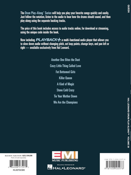 Queen Drum Play-Along Volume 29 Publisher: Hal Leonard Category: Drums & Percussion Series: Drum Play-Along Format: Softcover Audio Online The Drum Play-Along Series will help you play your favorite songs quickly and easily! Just follow the...Regular price $23.99 -