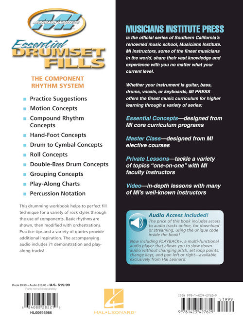 Author: Jeff Bowders Essential Drumset Fills Master Class Series Publisher: Musicians Institute Press Category: Drums & Percussion Series: Musicians Institute Press Format: Softcover Audio Online This drumming workbook helps to perfect fill technique for a variety...Regular price $33.99 -
