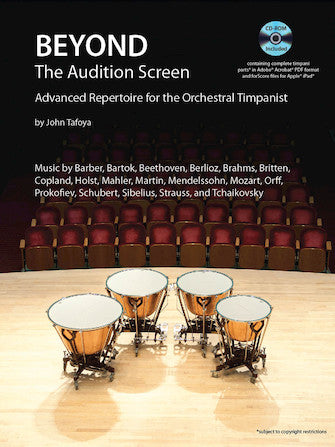Author: John Tafoya Beyond the Audition Screen Advanced Repertoire for the Orchestral Timpanist Publisher: Hal Leonard Category: Drums & Percussion Series: Percussion Format: Softcover with CD This book features 27 orchestral works currently requested at timpani...Regular price $29.99 -