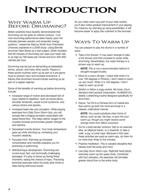 Author: Andy Ziker Daily Drum Warm-Ups 365 Exercises to Develop Your Technique Publisher: Hal Leonard Category: Drums & Percussion Series: Drum Instruction Format: Softcover Audio Online Here are 365 fantastic warm-ups - one for every day...Regular price $21.99 -