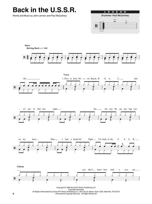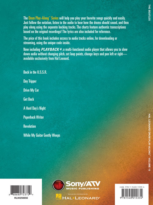 The Beatles Drum Play-Along Volume 15 Publisher: Hal Leonard Category: Drums & Percussion Series: Drum Play-Along Format: Softcover Audio Online Play your favorite songs quickly and easily with the Drum Play-Along Series. Just follow the drum...Regular price $23.99 -