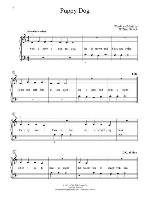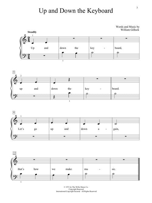 This popular 3-book series features original Gillock piano solos that progress from elementary to early intermediate level. All the pieces in the first book include memorable lyrics to help the beginner in retention. 14 pieces, including · Circus Clown · Clocks and Watches · Daddy's Rocking Chair · Flying Carpet · Glass Beads · Puppy Dog · Wind in the Bamboo Tree.