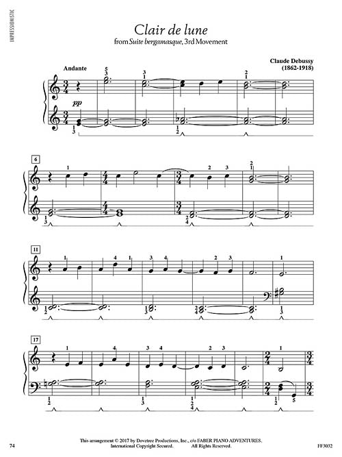 In this inspiring collection, late-elementary to early-intermediate pianists will find appealing arrangements that advance skills while exploring masterworks of Western music. The famous orchestral, keyboard, and operatic repertoire here spans four periods of music history. In the Baroque & Classical section, discover the elegance of Bach, the beauty of Mozart and the passion of Beethoven. Through the pages of the Romantic & Impressionistic section, sample the lyricism of Chopin, the drama of Grieg, and the atmosphere of Debussy. May the melodies of these and many other composers open an enduring world of expression and sound.