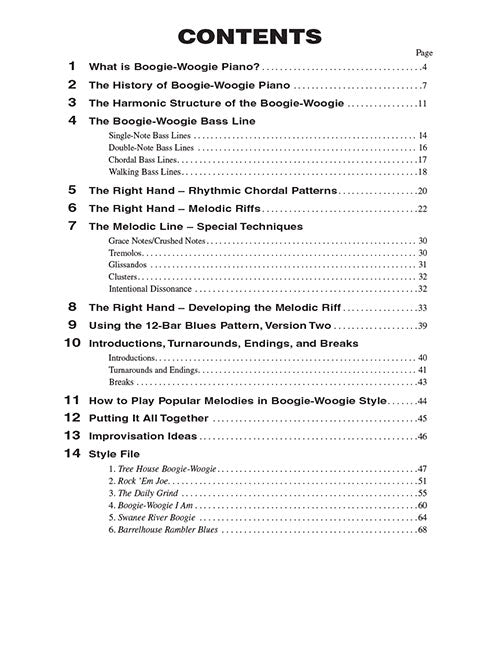 This comprehensive book will teach you the basic skills needed to play boogie-woogie. From learning the basic chord progressions to inventing your own melodic riffs, you'll learn the theory, tools and techniques used by the genre's best practicioners. The accompanying audio accessed online demonstrates most of the music examples in the book, with left- and right-channel tracks created for helpful hands-separate practice. The audio also includes playback tools for tempo adjustment or looping to assist during your practice sessions!