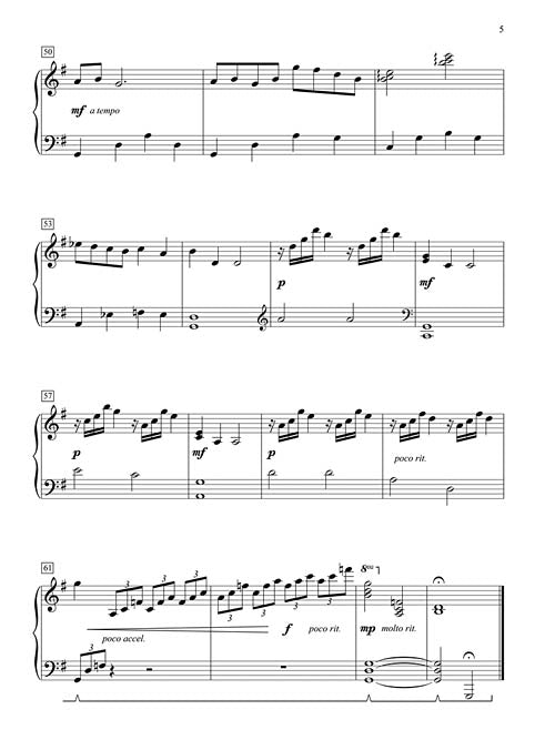 This ethereal piece is a melodic study in expressive playing. Its nostalgic feel and fluid arpeggiations make it especially appealing to the middle school level performer or early teen. Key: G Major.