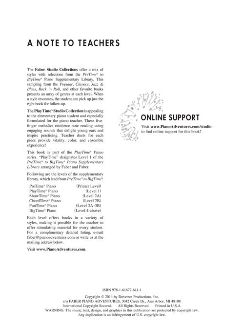 Faber Piano Adventures Faber Studio Collection Selections From Playtime® Piano L