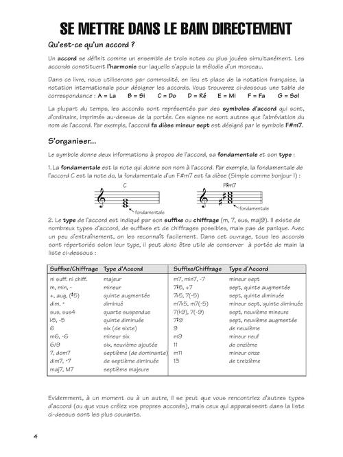 The fast way to find just the chord you need. This user-friendly reference book is jam-packed with over 1,400 chords and voicings and includes a jam session with 20 original songs using common chord progressions. Audio is accessed online using the unique code inside the book and can be streamed or downloaded. The audio files include PLAYBACK+, a multi-functional audio player that allows you to slow down audio without changing pitch, set loop points, change keys, and pan left or right.