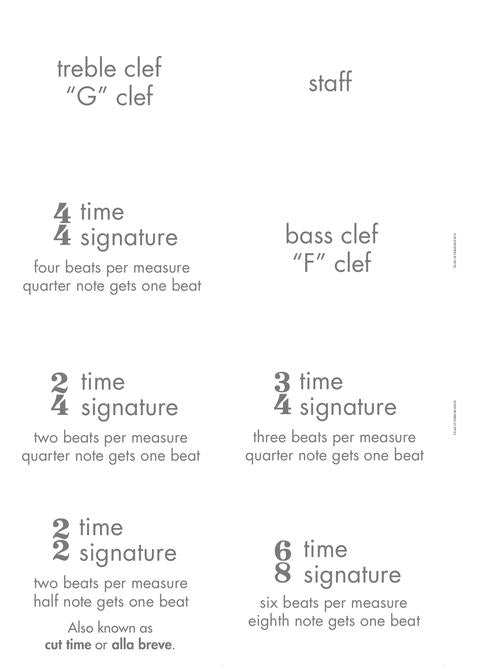 Create an enhanced learning experience for beginning students of any age with these 128 musical flash cards! The 4 inch. x 3 inch. cards cover: note names · basic musical terms and symbols · time signatures · key signatures · rhythm patterns. The material is based on concepts covered in John Thompson's Easiest Piano Course series (Parts 1-4). They are also suitable for use with any method! Description: Cards come perforated and are easy to tear apart. The question is printed in black, and the answer on the back in light gray.
