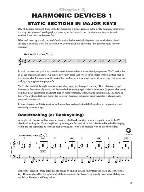 This comprehensive book with audio provides you with the tools you need to play in a variety of authentic gospel styles, through a study of rhythmic devices, grooves, melodic and harmonic techniques, and formal design. The accompanying online audio features over 90 tracks, including piano examples as well as the full gospel band to help capture the true flavor of the style.