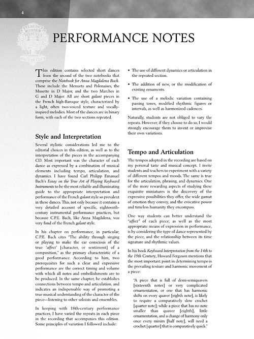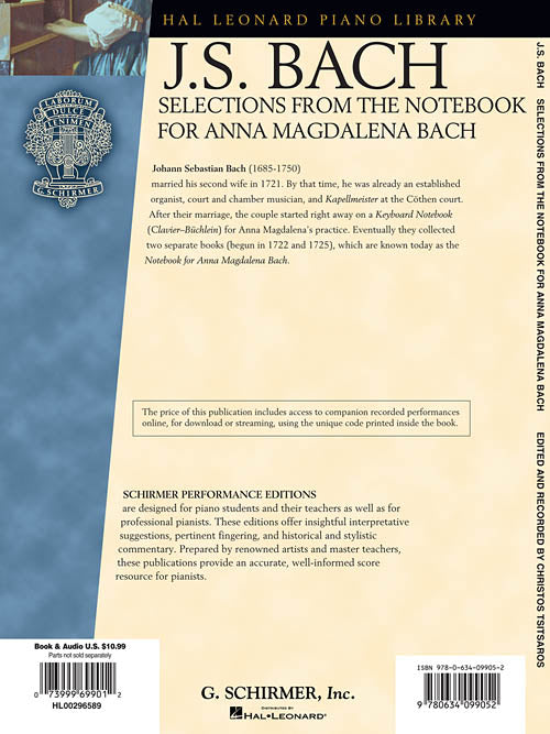 J S Bach Selections From The Notebook For Anna Magdalena Bach Schirmer Perfor