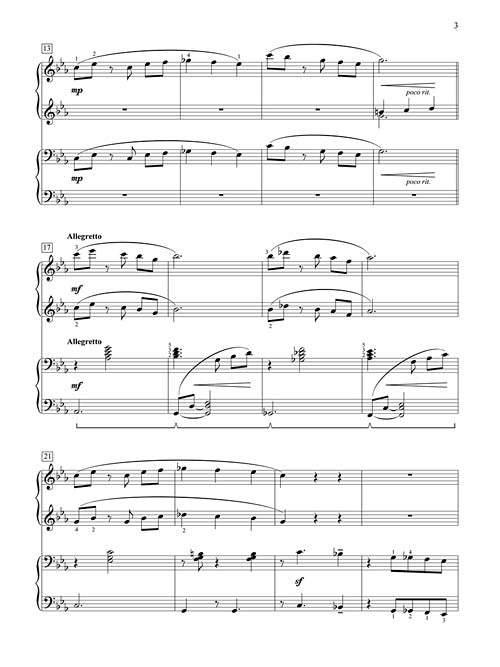 Smooth, sparse, and sinuous - this jazz-tinged duet will thrill and delight. Includes an optional improvisatory section. Key: C Minor.