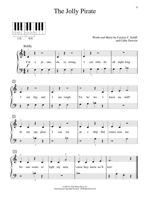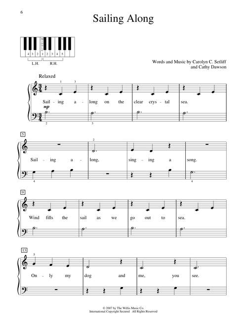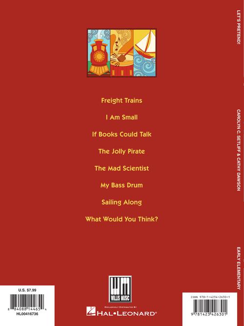An enchanting collection of 8 original piano solos written especially for the youngest beginner. Stylish coloring pages and thoughtful lyrics complement the music. Most pieces remain in Middle-C position and all include simple keyboard charts to help students locate notes and hand positions. Titles: My Bass Drum · Sailing Along · If Books Could Talk · The Jolly Pirate · The Mad Scientist · Freight Trains, and more!
