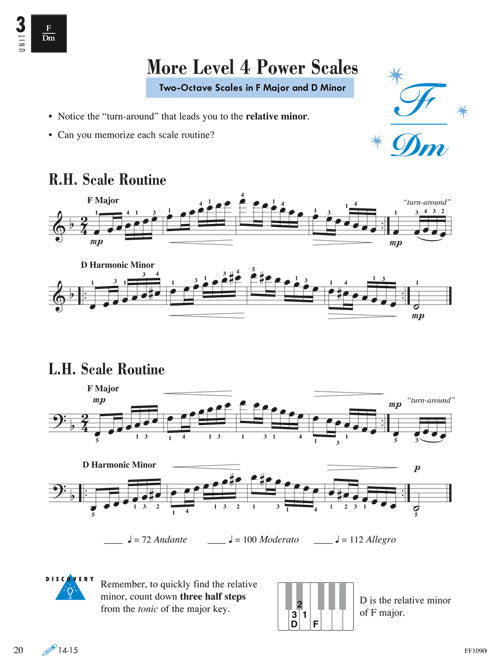 The 2nd Edition Level 4 Lesson Book follows Piano Adventures Level 3B. The book is arranged by related major and minor keys, grounding the repertoire. The emphasis on root position V7 chords, arpeggios, and Power Scales links applied theory to the pieces being studied. Expressive repertoire selections build a strong foundation in harmony and technique.