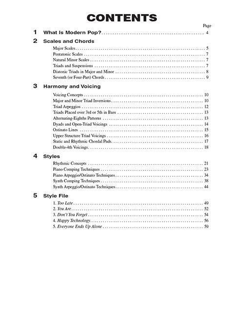 This comprehensive book will teach you the basic skills needed to play modern pop keyboard. From comping to soloing, from grand to piano synth pads, you'll learn the theory, the tools, and the techniques used by the pros. Covers: scales and chords, harmony and voicings, comping styles, rhythmic concepts, piano and synth techniques, and more. The online audio demonstrates most of the music examples in the book. Now including PLAYBACK+, a multi-functional audio player that allows you to slow down audio without changing pitch, set loop points, change keys, and pan left or right - available exclusively from Hal Leonard.