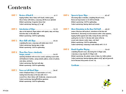 Writing Book C (the companion book for Lesson Book C) provides 64 colorful, fun-filled pages of writing, ear-training, and CLAP for Sightreading activities. A focus on reading skips leads students to cross bridges, connect flags, meet a mouse, and skip to deep-sea treasures, to name just a few! Writing Book C engages children in the lives and melodies of classical composers introduced in the Lesson Book C. Take part in Haydn's Fun Facts and Game, make after-dinner music with Mozart, tap Beethoven's rhythms, and help Tchaikovsky tell the story of a doll with a broken arm. The valuable educational activities and vibrant illustrations of My First Piano Adventure ® are sure to delight the young beginner and teacher.