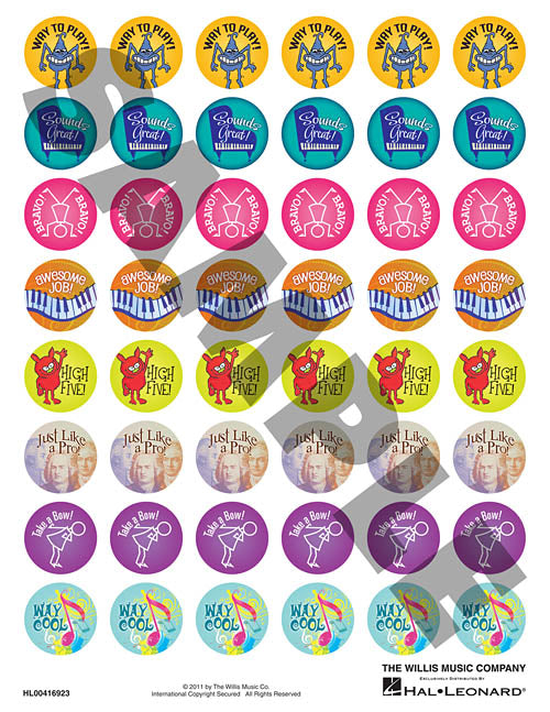 96 full color fun and motivational stickers that students will love. 8 different designs - 12 stickers per design - several influenced by popular Willis publications! Actual size is 1-inch for each one.