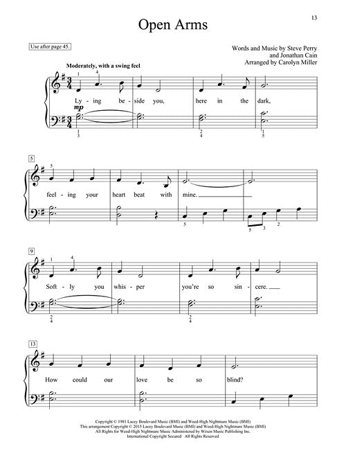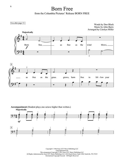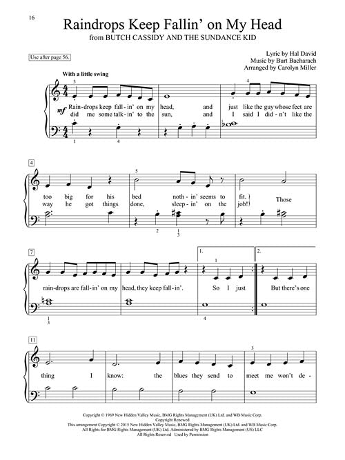 12 great arrangements for the more mature student that can be used on their own, or as a supplement to John Thompson's Adult Piano Course (Book 1). Titles: Born Free · Can't Help Falling in Love · Every Breath You Take · Fields of Gold · Give My Regards to Broadway · A Groovy Kind of Love · My Life · Ob-La-Di, Ob-La-Da · Open Arms · Raindrops Keep Fallin' on My Head · Rainy Days and Mondays · Sweet Caroline. This book includes access to audio tracks online that can be downloaded or streamed!