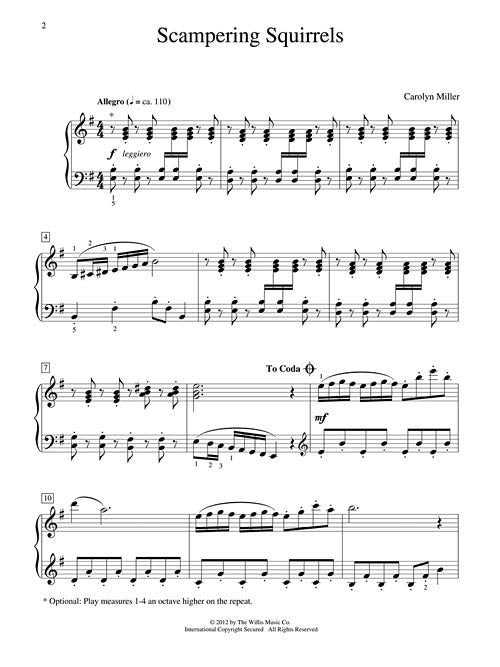 This energetic and lively piece is tremendously fun to play and, as a bonus, sounds harder than it is! Excellent for practicing articulation and smooth scale playing. (Interesting fact: Teachers at a Carolyn Miller workshop helped to name the piece!) Key: E Minor.
