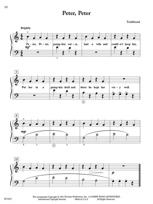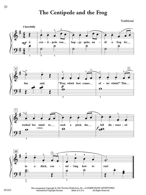 ShowTime® Piano Favorites Level 2A Publisher: Faber Piano Adventures Category: Educational Keyboard Series: Faber Piano Adventures® Format: Softcover This delightful collection of 17 favorite folk songs and familiar melodies offers pieces useful for recital performance, family or group sing-along, and as motivational material for the private or group lesson. Arrangements are in the 5-finger hand positions of C, G, F, Dm and Am, and harmony is limited to single notes and harmonic intervals. Includes: L'il Liza Jane · My Ma Gave Me a Nickel · The Three Doughs · Bill Groggin's Goat · Go Tell Aunt Rhody · Peter, Peter · Off to Bed, Now · The Ash Grove · Old King Cole · Irish Washerwoman · Shave and a Haircut · The Old Gray Mare · Boom Boom! · The Centipede and the Frog · Michael Finnegan · Give My Regards to Broadway · Music Alone Shall Live. View Helpful Introductory Videos Here (https://www.youtube.com/playlist?list=PL903AD4D345555133) Inventory # : 00420144 UPC: 674398200894 ISBN: 161677035X Width: 9" Length: 12" Height: 0.099" Product Weight: 0.2 lbs. Number of Pages: 24