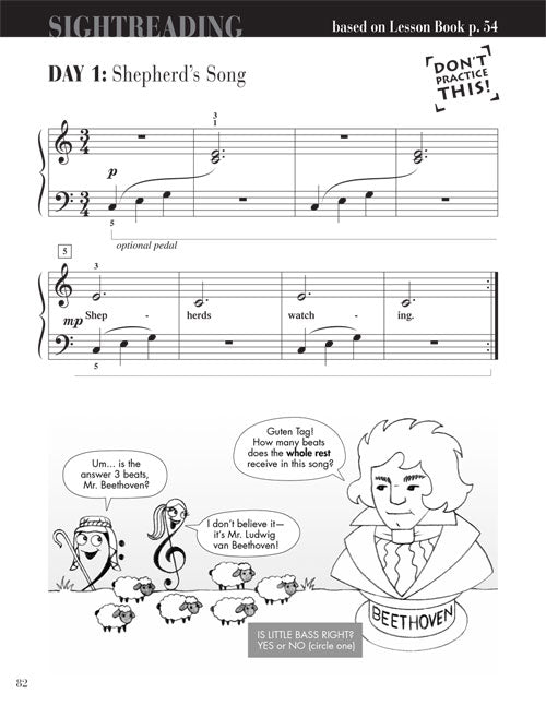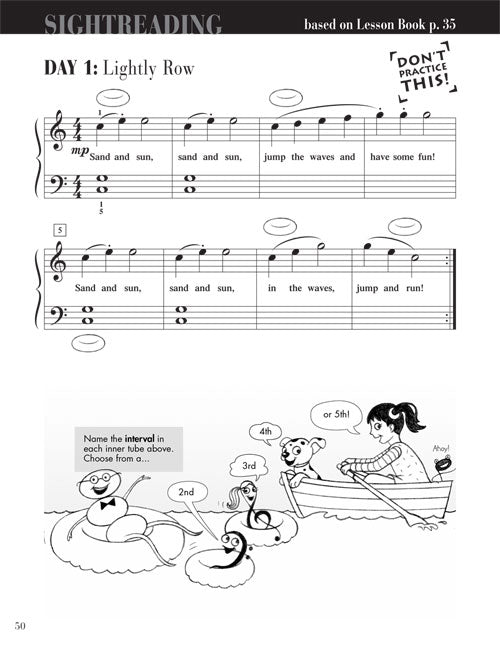 Level 1 students can have lots of fun while developing strong sightreading skills. This inventive course uses sets of exercises based on melodic and rhythmic patterns from the Level 1 Lesson Book. Students play one exercise a day, while enjoying the entertaining musical art that guides their sightreading progress.