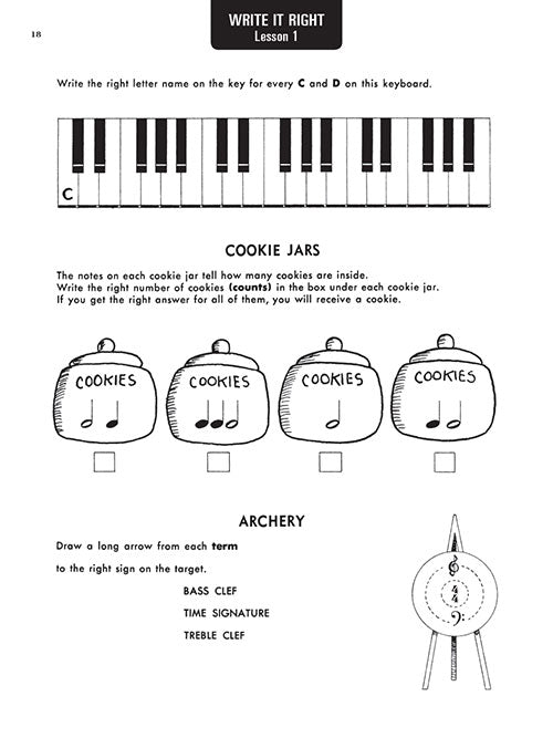 A comprehensive volume of this classic method that features lessons, solos, and theory exercises. This time-tested method is perfect for very young beginners and provides them with an opportunity to learn the piano in a unique and charming way, with each lesson presented in a logical order and at a manageable pace. The All-in-One version features material from the Step by Step method, the Write It Right theory exercises, and the Pieces to Play performance pieces; each supplement is placed where Burnam originally intended. In addition, the price includes online audio and MIDI files that can be downloaded or streamed.