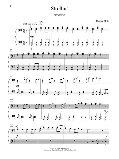 This cool, jaunty duet is perfect for summer! Its laidback rhythm and catchy melody will have students humming - and extremely enthusiastic about playing together. Key: G Major.