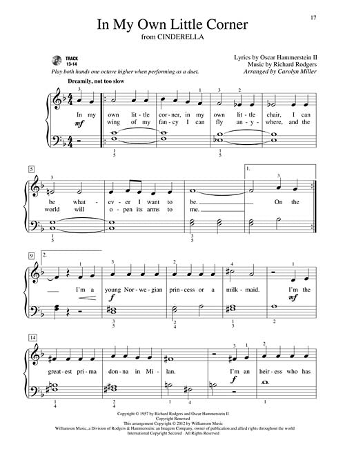 Ten more Broadway favorites arranged for students, with fantastic optional teacher accompaniments by Carolyn Miller! Songs: Castle on a Cloud · Climb Ev'ry Mountain · Gary, Indiana · In My Own Little Corner · It's the Hard-Knock Life · Memory · Oh, What a Beautiful Mornin' · Sunrise, Sunset · Think of Me · Where Is Love?