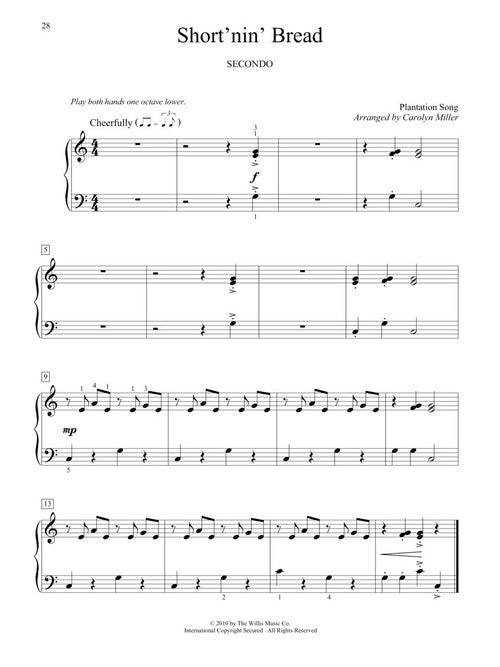 9 more fun duets arranged for 1 piano, 4 hands: A Bicycle Built for Two (Daisy Bell) · Blow the Man Down · Chopsticks · Do Your Ears Hang Low? · I've Been Working on the Railroad · The Man on the Flying Trapeze · Short'nin' Bread · Skip to My Lou · The Yellow Rose of Texas.