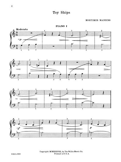 Toy Ships John Thompson's Students Series NFMC 2020-2024 Selection 2 Pianos, 4 Hands/Early Elementary Level Publisher: Willis Music Category: Educational Keyboard Series: Willis Format: Paperback To see other NFMC selections, click here (http://www.halleonard.com/promo/promo.do?promotion=183) . Inventory # : 00412369 UPC: 73999808742 ISBN: Width: 9" Length: 12" Height: 0.025" Product Weight: 0.1 lbs. Number of Pages: 4