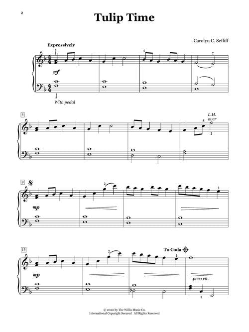 A beautiful expressive piece that gently unfolds. Both hands receive a turn with the lyrical melody. Key: F Major.