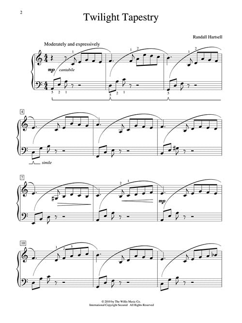 Destined to be an instant favorite with students! A beautiful singing melody combined with patterns in both hands make Twilight Tapestry a joy to practice and perform.