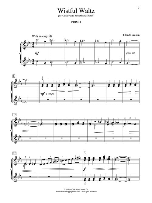 Romantic and full of yearning, Wistful Waltz was originally titled Jazz Waltz in C Minor. Excellent sightreading fare, and perfect as part of an ensemble concert.
