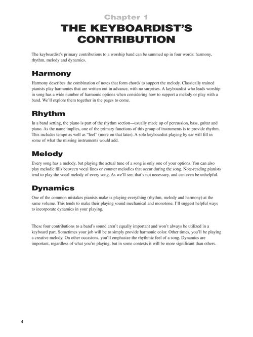 This comprehensive book will teach you the basic skills needed to play piano or keyboard in a modern worship setting. From chord inversions to color tones, from rhythmic patterns to the Nashville Numbering System, you'll learn the tools and techniques used by the pros. The online audio features over 100 demonstrations of nearly every musical example in the book, and it includes PLAYBACK+, a multi-functional audio player that allows you to slow down audio without changing pitch, set loop points, change keys, and pan left or right.