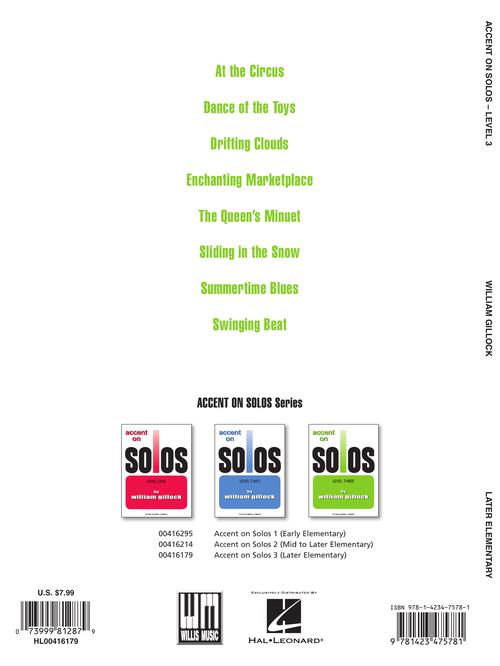 Accent on Solos Book 3Publisher: Willis MusicCategory: Educational KeyboardSeries: WillisFormat: SoftcoverThis popular 3-book series features original Gillock piano solos that progress from late elementary to early intermediate level. The third book features 8 fabulous masterpieces: At...Regular price $9.99 -