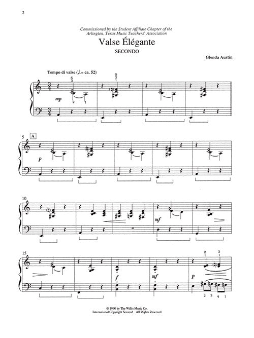 Valse Elegante 1 Piano, 4 Hands/Mid-Intermediate Level Publisher: Willis Music Category: Educational Keyboard Series: Willis Format: Softcover Beautifully written, this dreamy waltz is always an immediate student and crowd-pleaser. An excellent collaborative piece! Key: C Major....Regular price $7.99 -