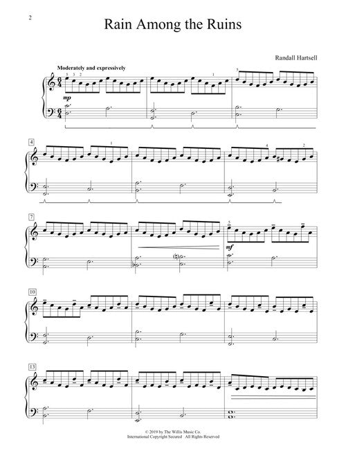 Rain Among the Ruins Mid-Intermediate Level Publisher: Willis Music Category: Educational Keyboard Series: Willis Format: Softcover A lovely piece infused with tragic beauty. The melody and harmonies have a yearning, intangible quality. Requires steady legato playing...Regular price $4.99 -