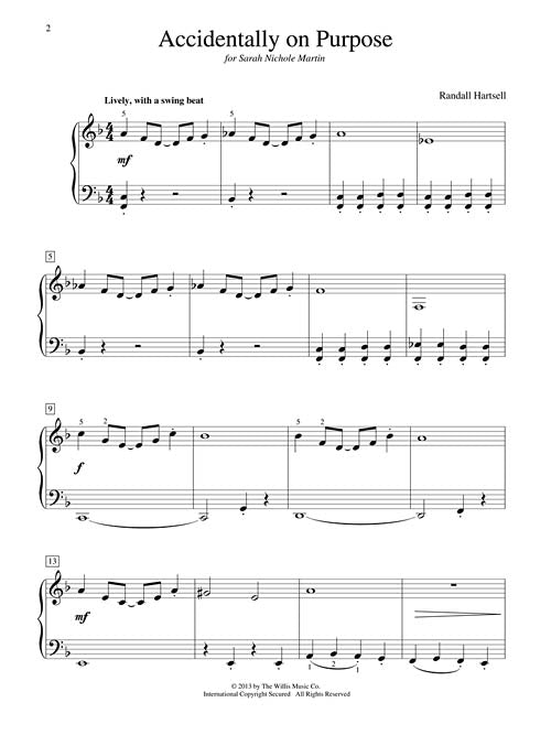 Accidentally on Purpose Later Elementary Level Publisher: Willis Music Category: Educational Keyboard Series: Willis Format: Paperback A cheerful, charming piece with snappy rhythms and fun articulations, and with a few accidentals thrown in (on purpose). Key:...Regular price $3.99 -