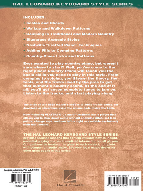 Country Piano - The Complete Guide with Online Audio!Hal Leonard Keyboard Style SeriesPublisher: Hal LeonardCategory: Educational KeyboardSeries: Keyboard InstructionFormat: Softcover Audio OnlineEver wanted to play country piano, but weren't sure where to start? Country Piano will...Regular price $23.99 -