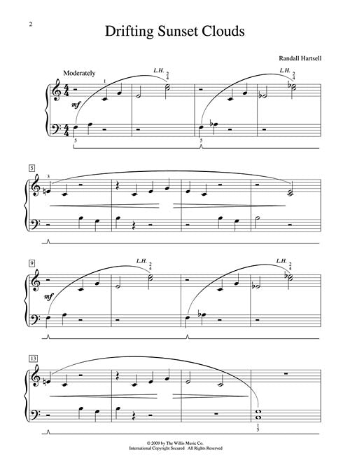 Drifting Sunset Clouds National Federation of Music Clubs 2014-2016 Selection Mid-Elementary Level Publisher: Willis Music Category: Educational Keyboard Series: Willis Format: Paperback This simple, heartfelt piece is intended to convey a soft, perfect ending to a...Regular price $5.99 -