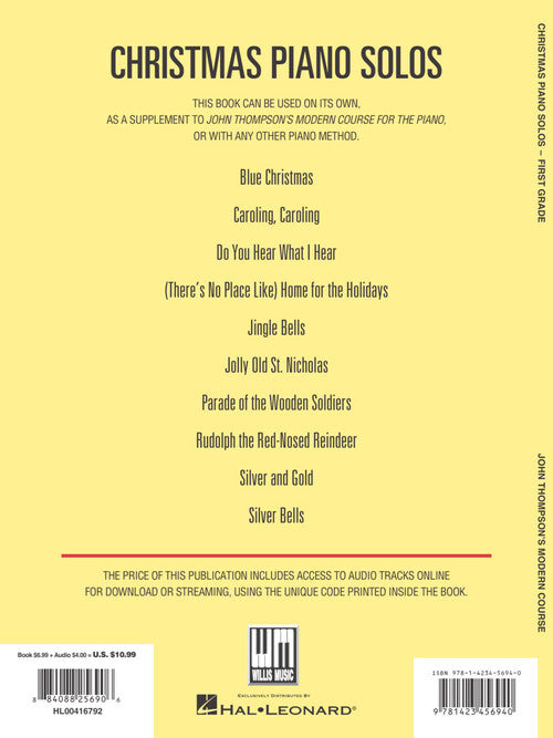 Christmas Piano Solos - First Grade (Book/Online Audio) John Thompson's Modern Course for the Piano Publisher: Willis Music Category: Educational Keyboard Series: Willis Format: Softcover Audio Online 10 new graded arrangements of popular Christmas songs that...Regular price $13.99