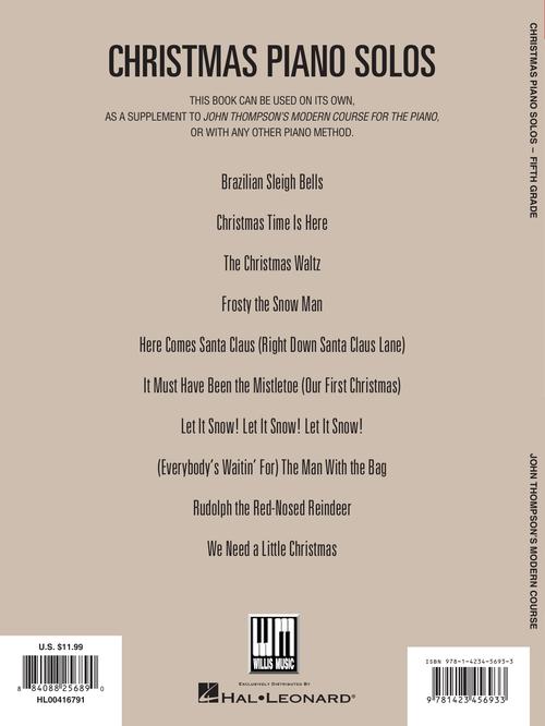 Christmas Piano Solos - Fifth Grade (Book Only) John Thompson's Modern Course for the Piano Publisher: Willis Music Category: Educational Keyboard Series: Willis Format: Softcover This collection includes 10 arrangements for fifth grade students of fun...Regular price $15.99 -