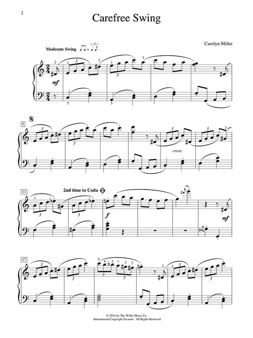 Carefree Swing National Federation of Music Clubs 2020-2024 Selection Early Intermediate Level Publisher: Willis Music Category: Educational Keyboard Series: Willis Format: Paperback Breezy and cheerful, Carolyn Miller's Carefree Swing is a great introduction to triplets and...Regular price $5.99 -